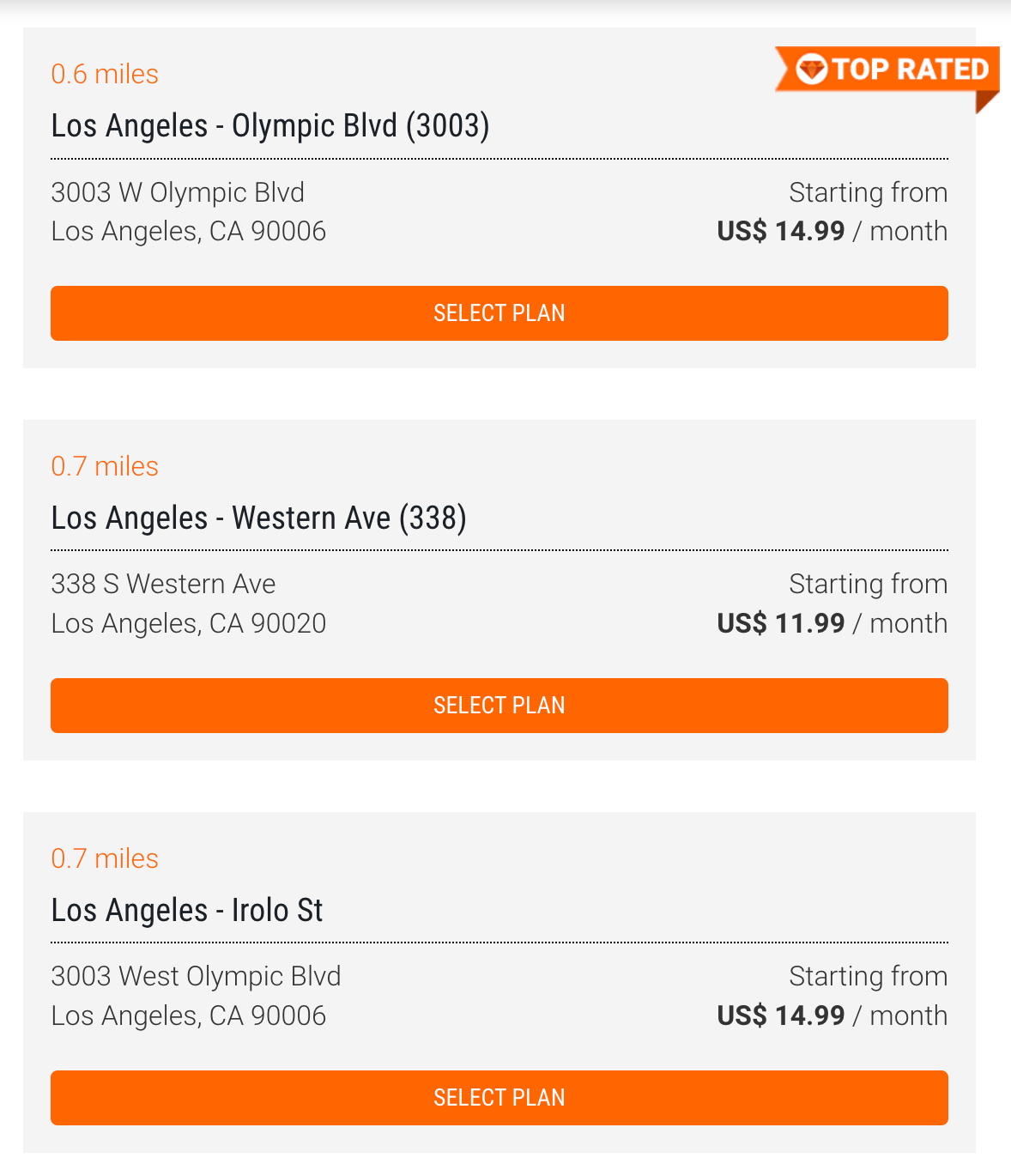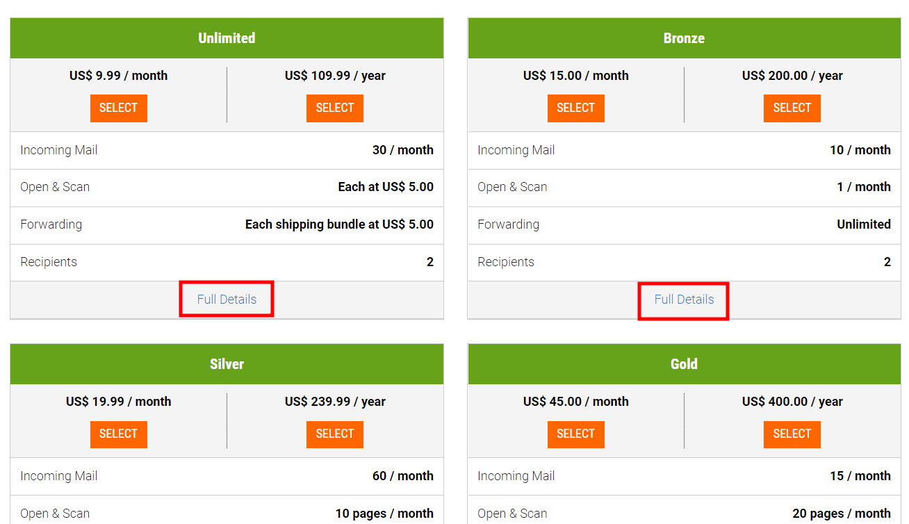 Choose your preferred location. Then, select a mailing center from the provided list. Note that each mailing center sets its own service plans and pricing.