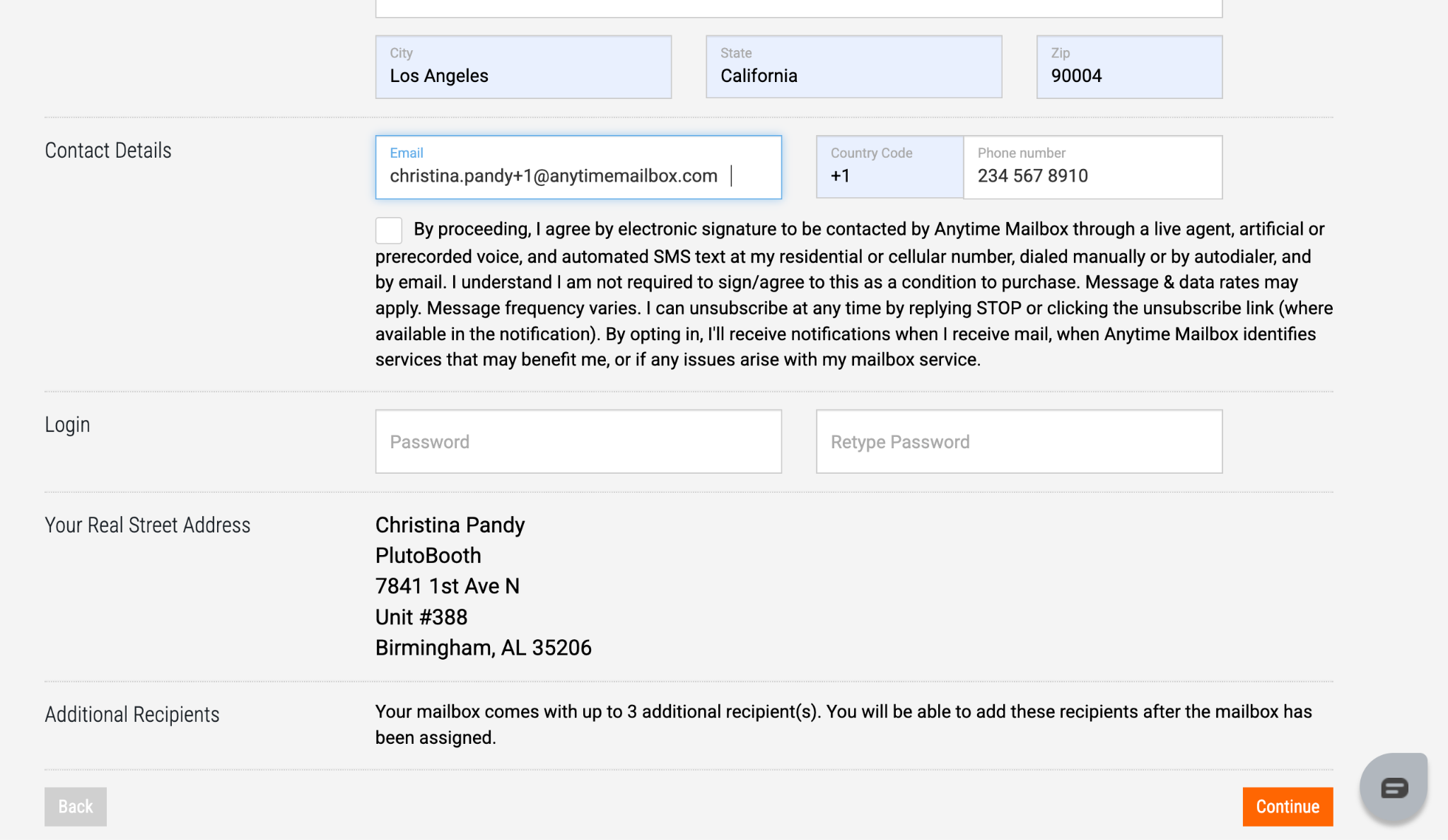 Step 4:Provide your home address, contact details, and create a login password. Click Continue when you're done.